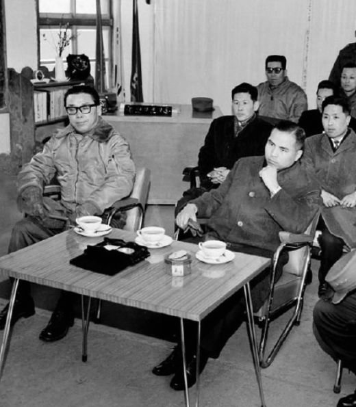 1964년 2월 국회 국방위 소속 차지철 의원(오른쪽)이 6사단을 방문, 김재규 사단장(준장)을 옆에 앉힌 채 상석에서 브리핑을 받고 있다.사진 국가기록포털