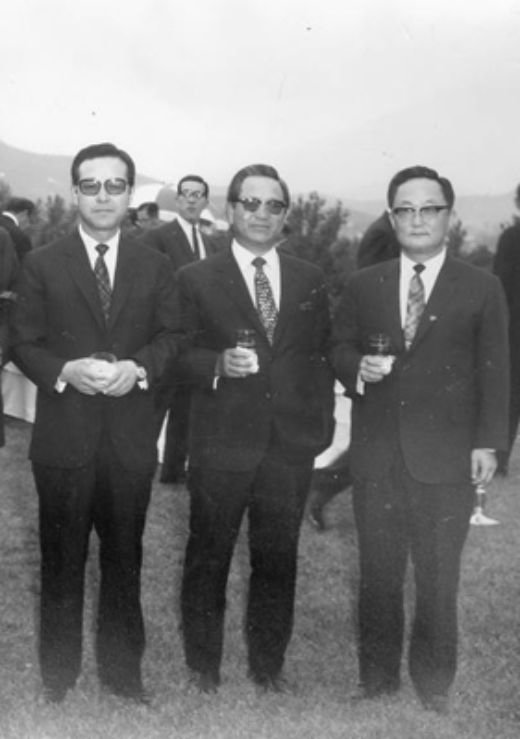 1970년 6월 10일 김계원 5대 중정부장(오른쪽)이 중정 창설 9주년을 맞아 전임 부장 초청행사를 열었다. 왼쪽부터 김종필 초대·김형욱 4대 정보부장. 중앙포토